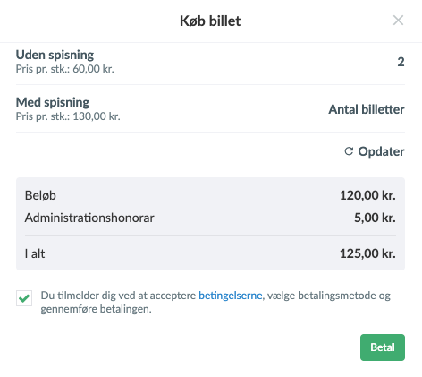Bemærk: Klubben kan vælge, om betaling med Mastercard/udenlandske kreditkort tillades. Hvis ikke kan du kun betale med VISA/Dankort eller MobilePay.