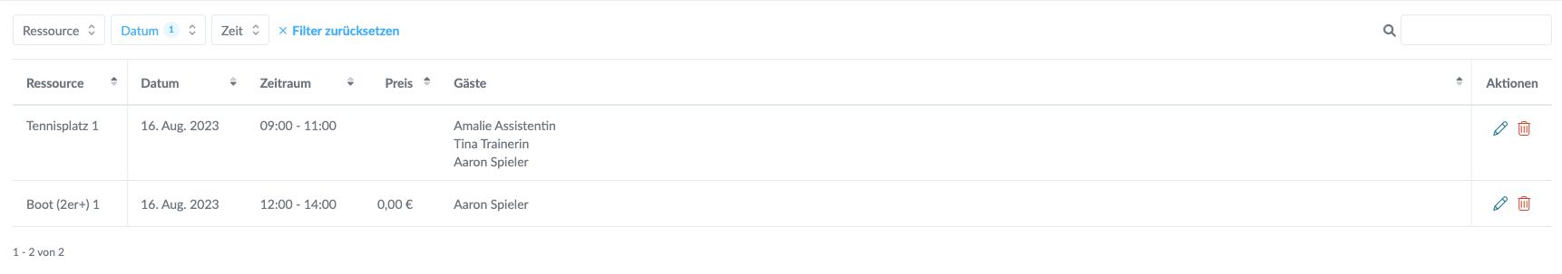 Du kannst die Buchungen bearbeiten, z. B. um ein weiteres Mitglied hinzuzufügen oder sie zu löschen, falls du sie nicht mehr brauchst.