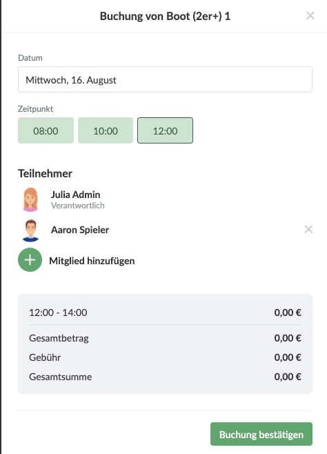 6. Klicke auf die grüne Schaltfläche Buchung bestätigen