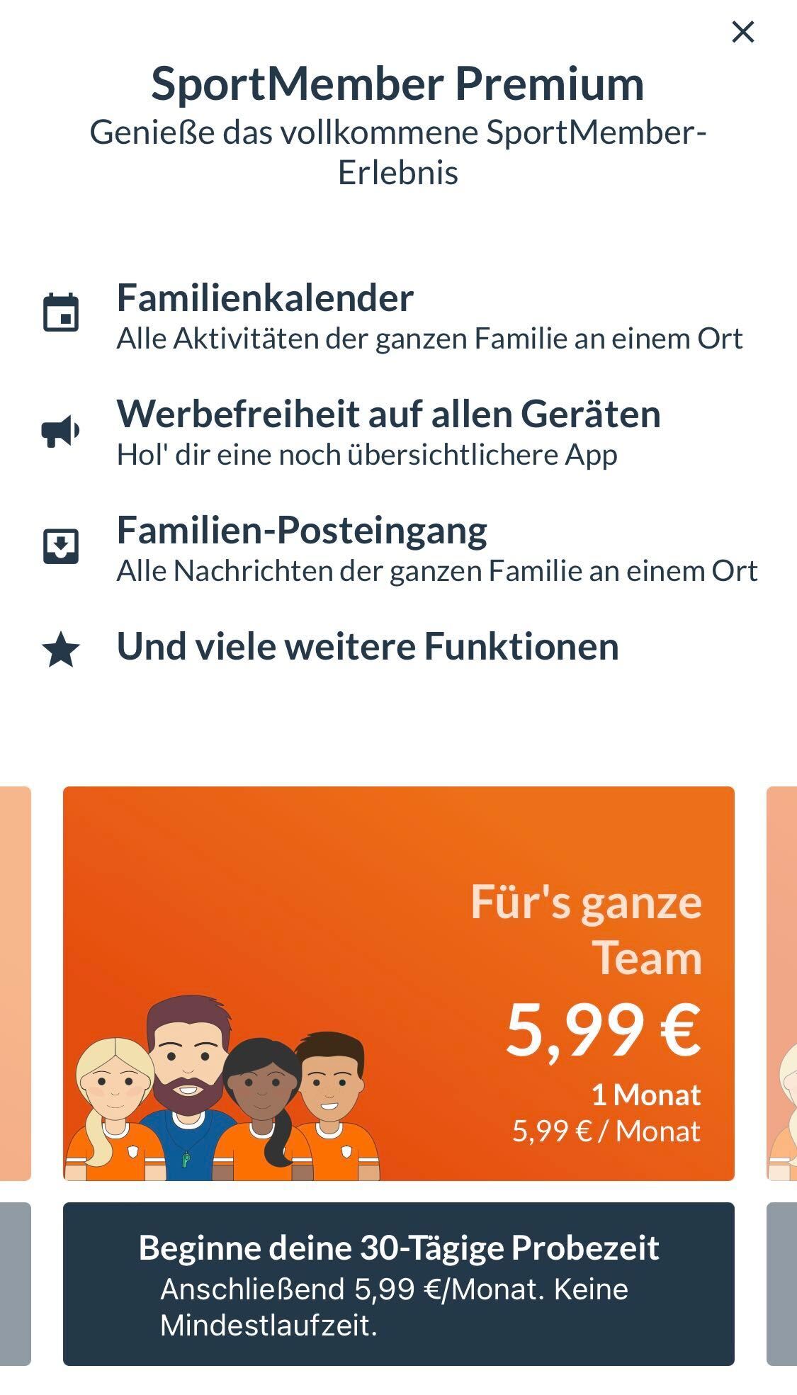 Trainer können ein Abonnement für ihr ganzes Team kaufen, sodass alle Mitglieder das bannerfreie SportMember genießen können.