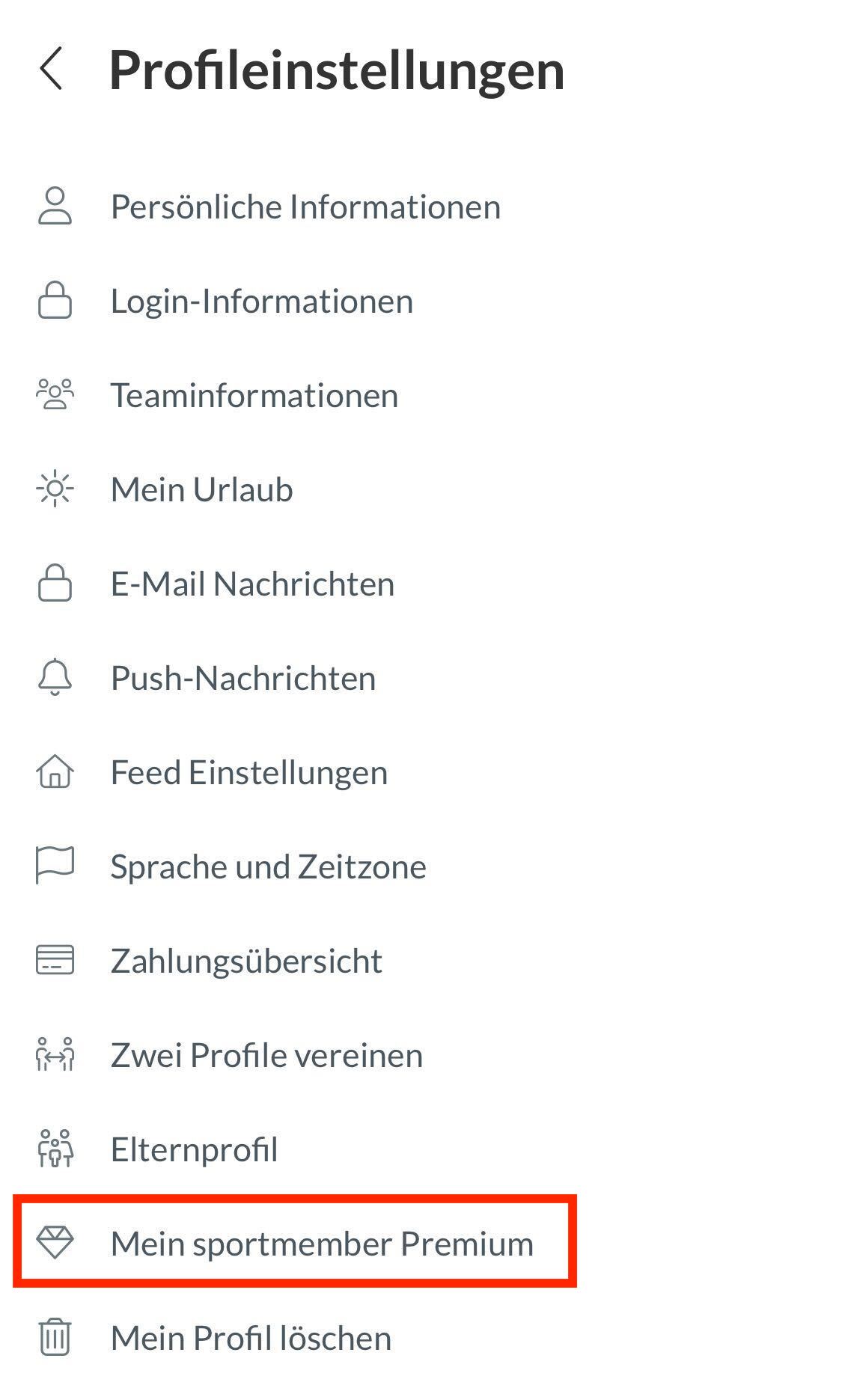 Hier findest d einen Punkt der "Mein SportMember Premium" heißt.