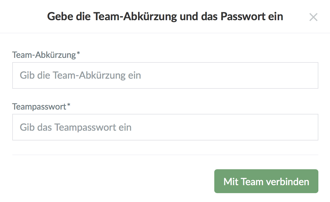 Mitglied eines Teams via Team-Abkürzung und Passwort werden