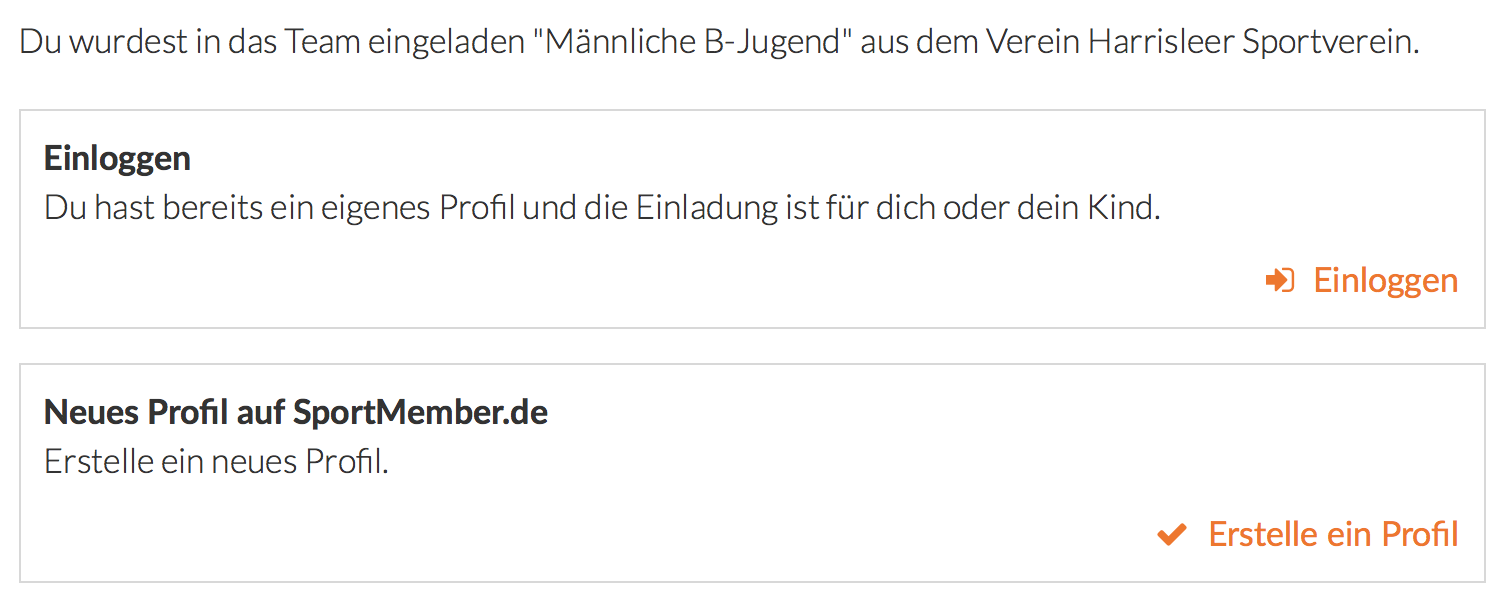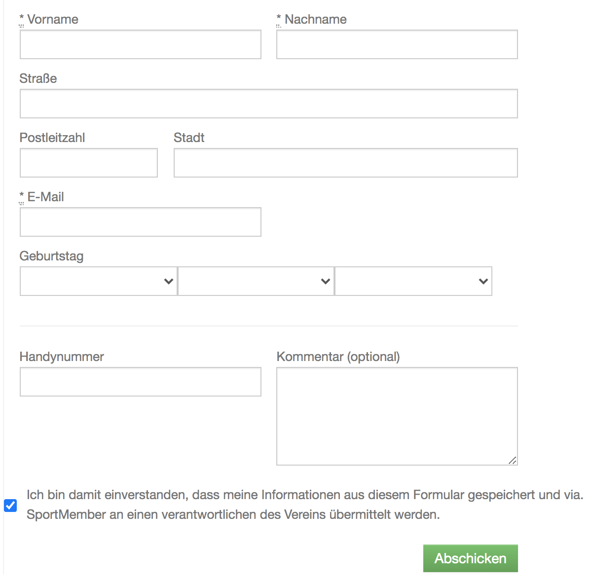 Wenn der Verein eine Website über SportMember hat, kannst du dich womöglich über ein Anmeldeformular für das spezifische Team registrieren.