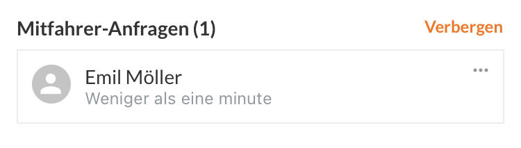 - Beende diesen Vorgang mit dem grünen Button Um Mitfahren bitten