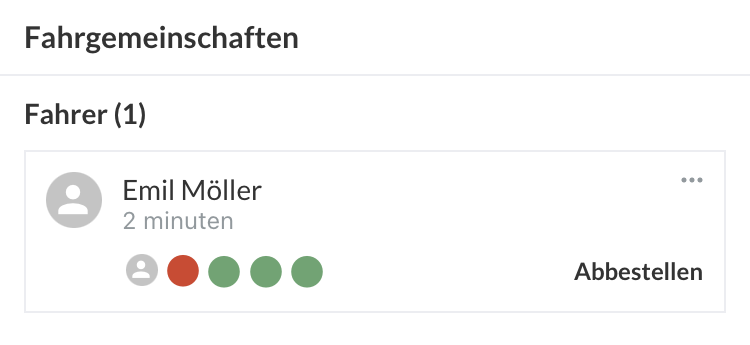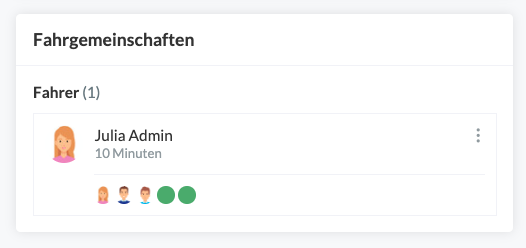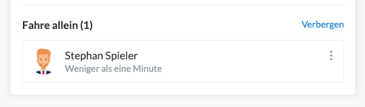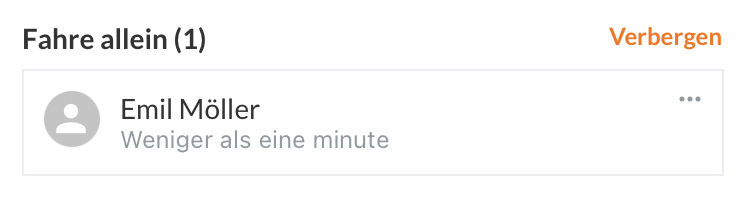Deine Teammitglieder können nun sehen, dass du alleine fährst und somit keine Mitfahrgelegenheit brauchst.