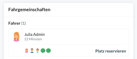 Wenn du daran interessiert bist, einer Fahrgemeinschaft beizutreten, kannst du einen Platz reservieren.