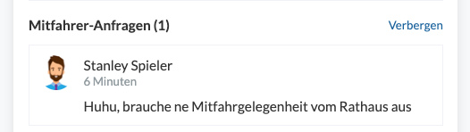 Deine Teammitglieder können nun sehen, dass du eine Mitfahrgelegenheit brauchst.