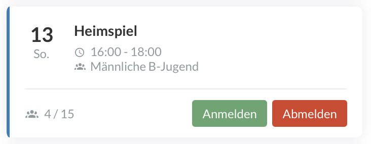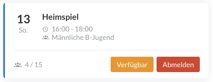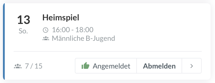 Bei der Teilnahmepflicht sind alle Spieler angemeldet. Melde dich ab, wenn du nicht kommen kannst.
