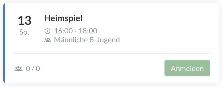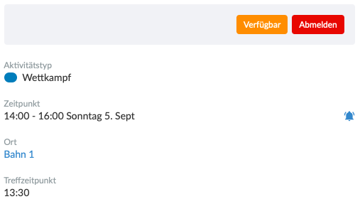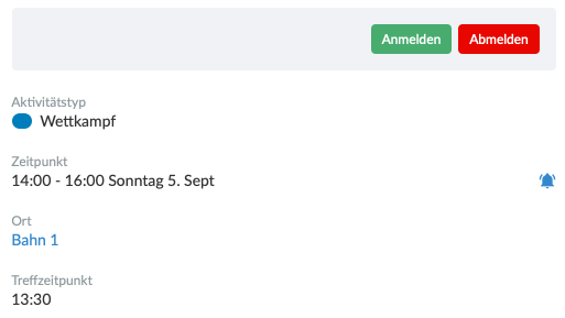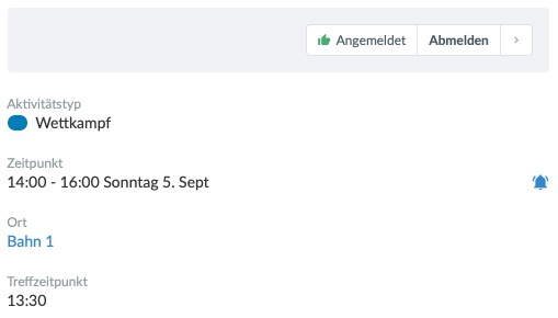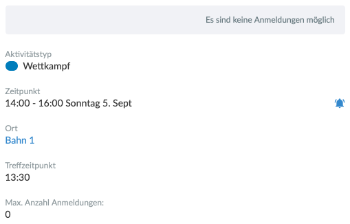 Beachte: Wenn die maximale Teilnehmeranzahl erreicht ist oder die Anmeldefrist um ist, kannst du dich NICHT mehr für die Aktivität anmelden. Der Trainer hat allerdings die Möglichkeit eine Warteliste zu erstellen.