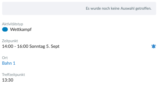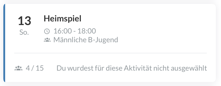 Beachte: Wenn du nicht für die Aktivität ausgewählt wurdest, hast du hier keine Möglichkeiten der An- oder Abmeldung.