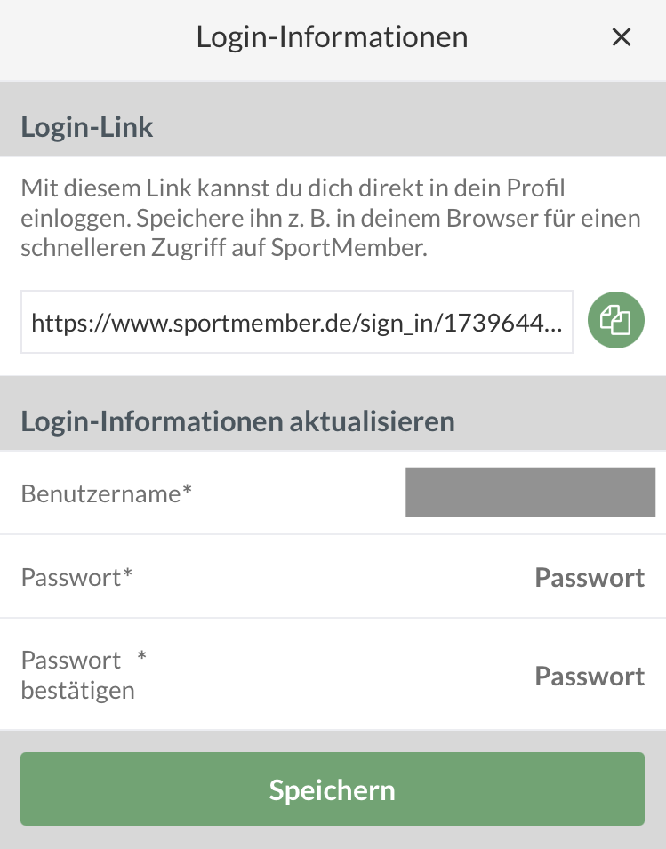 Gebe dein neues Passwort zweimal ein und beende den Vorgang durch ein Klicken auf den grünen Button Speichern