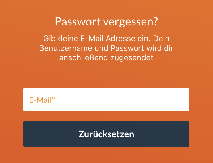Hier kannst du dann deine E-Mail Adresse eingeben, woraufhin wir dir einen Link zuschicken, mit dem dein Passwort zurückgesetzt wird und du ein Neues festlegen kannst.
