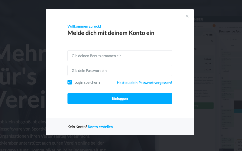 Öffne deine SportMember-App und klicke auf Einloggen