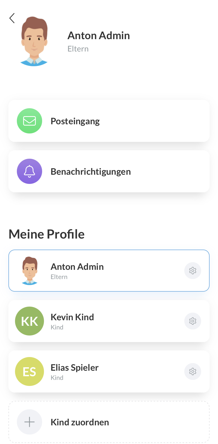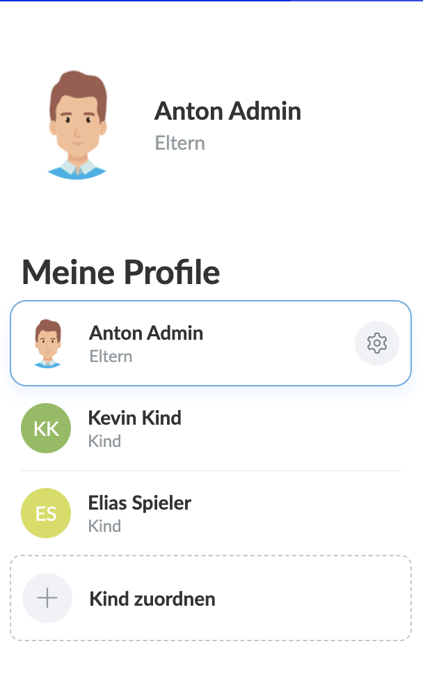 - In Falle von getrennt lebenden Eltern können beide Elternteile jeweils ein Elternprofil zur Verwaltung der Profile der Kinder einrichten