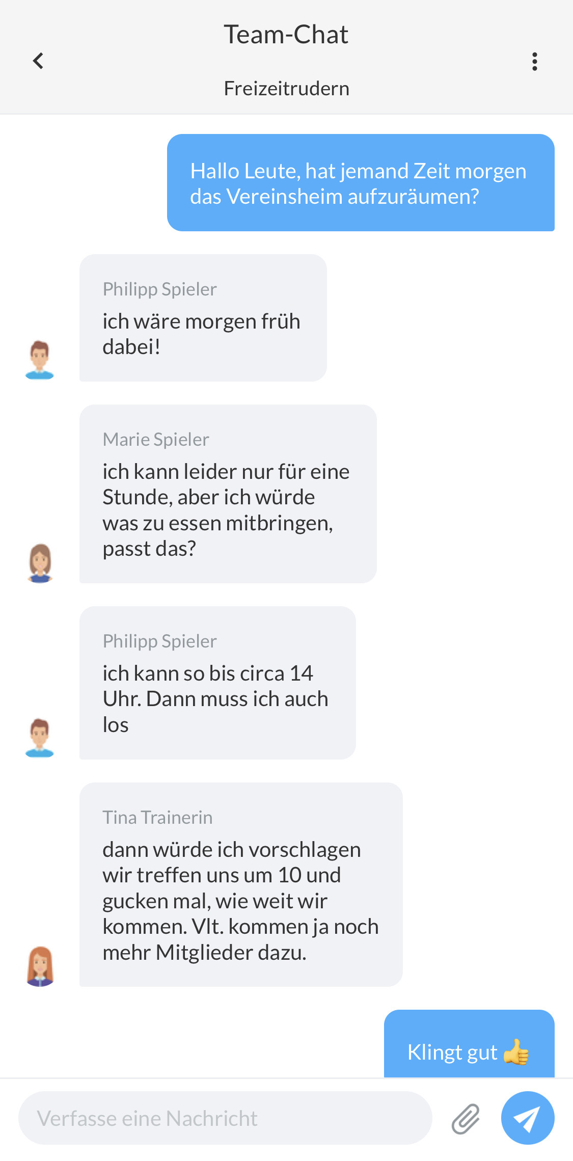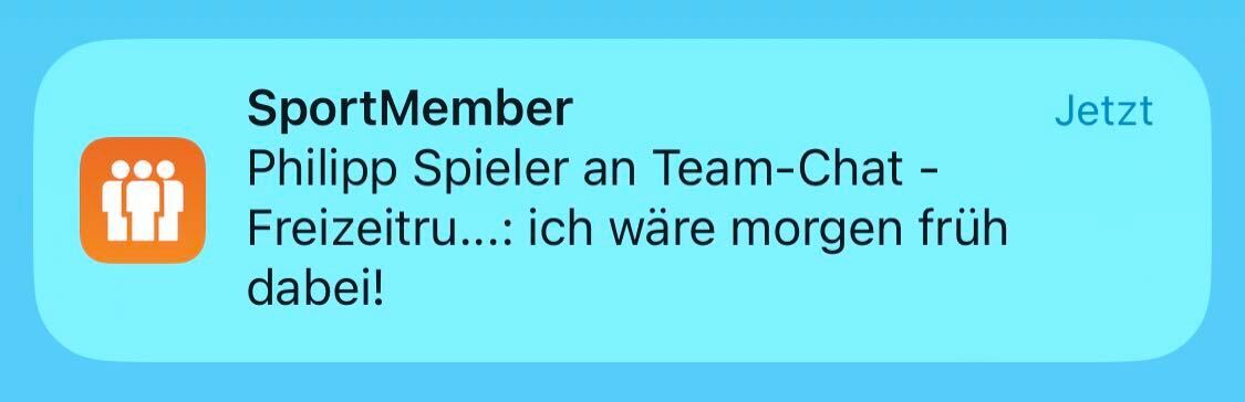 Wenn eine neue Nachricht im Chat verfasst wird, bekommen alle Mitglieder des Teams eine Push-Nachricht. Natürlich müssen sie dafür die SportMember-App nutzen: