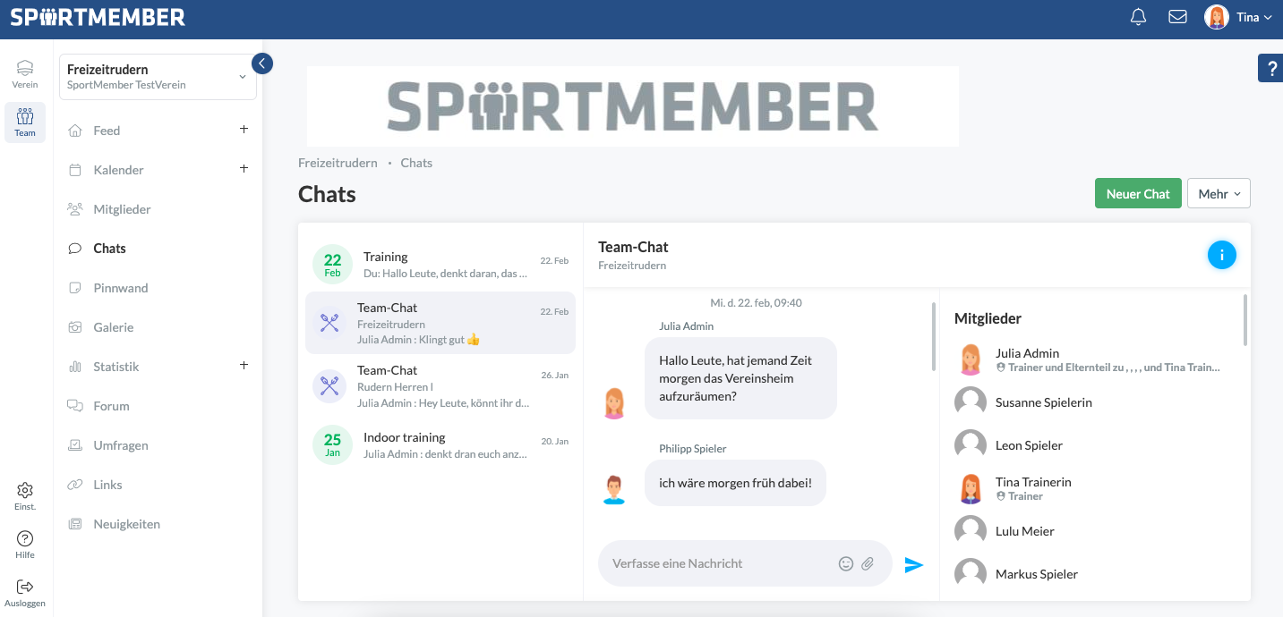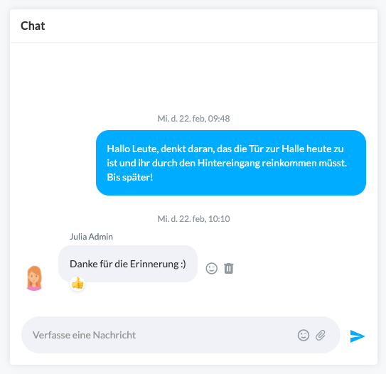 Siehe den Chat und/oder schreibe eine Nachricht an die ausgewählten Personen (sowohl Trainer als auch Mitglieder)