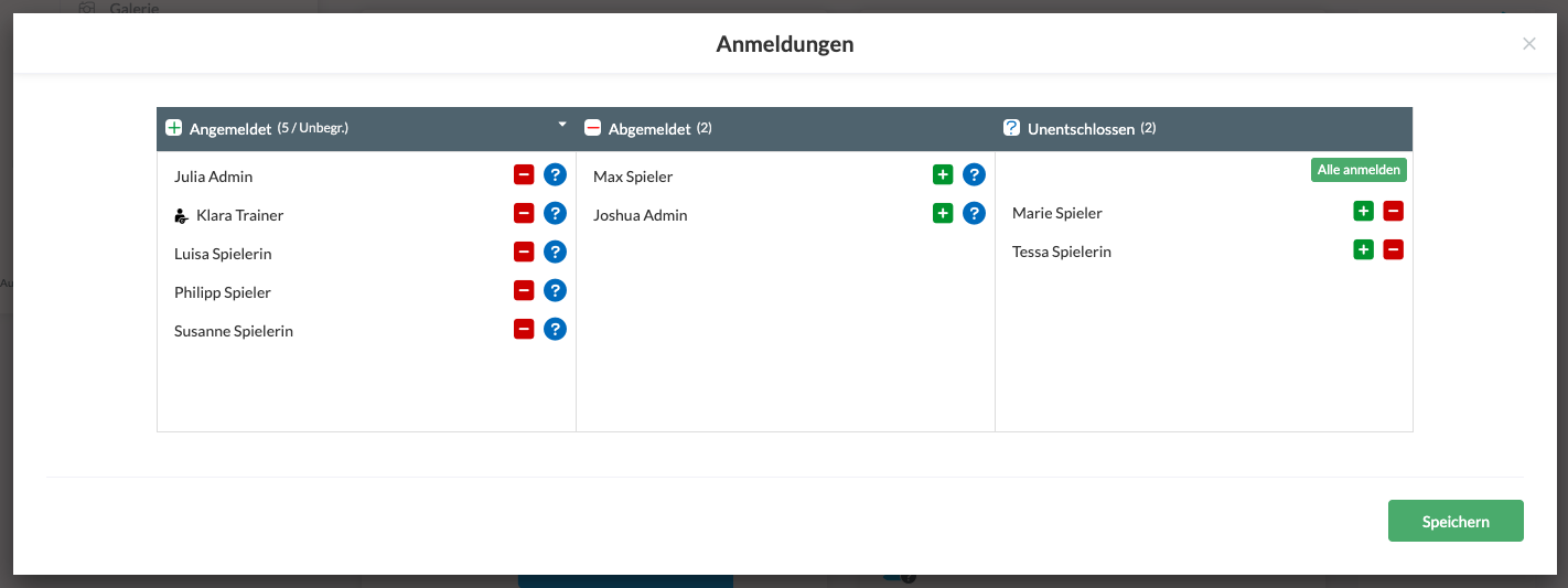 Nachdem du die An- und Abmeldungen verwaltet hast, beende den Vorgang mit einem Klicken auf den grünen Button Speichern.