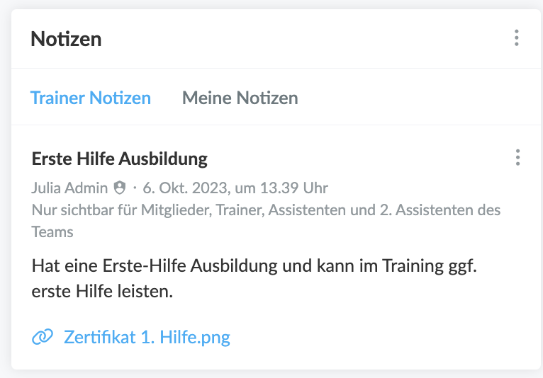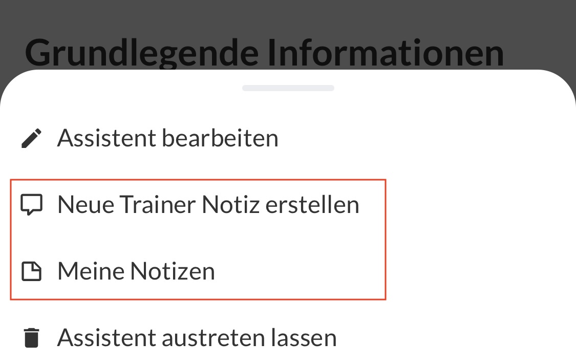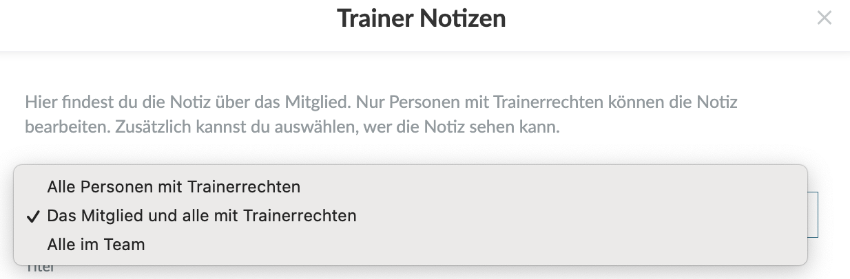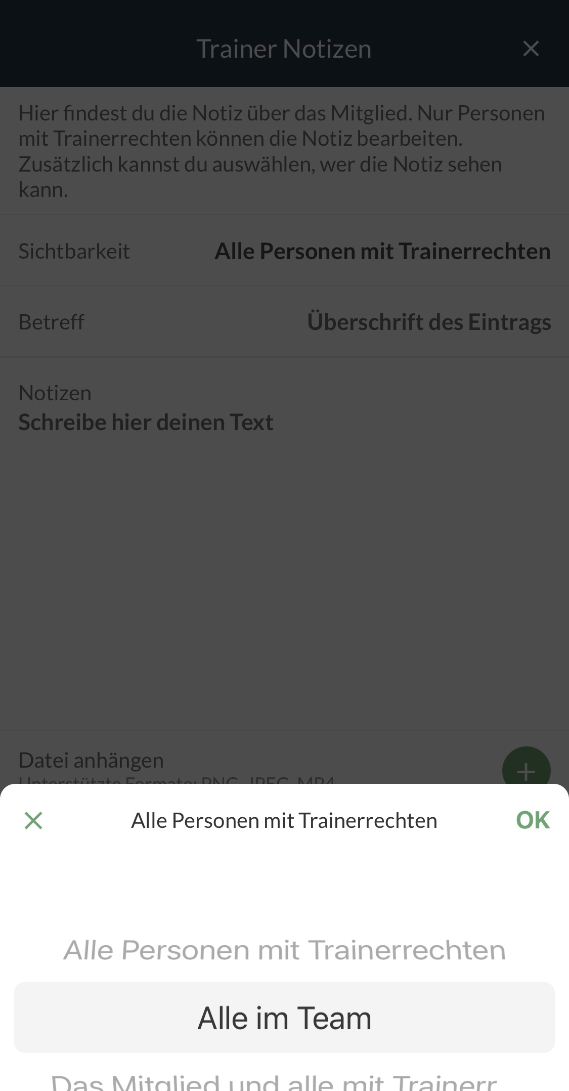 Jetzt kannst du zwischen einer Trainer Notiz und einer privaten Notiz wählen.
