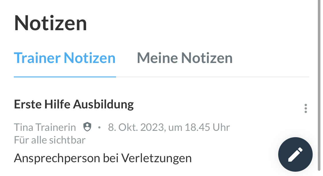 Mit SportMember, kannst du Trainer Notizen und private Notizen schreiben.