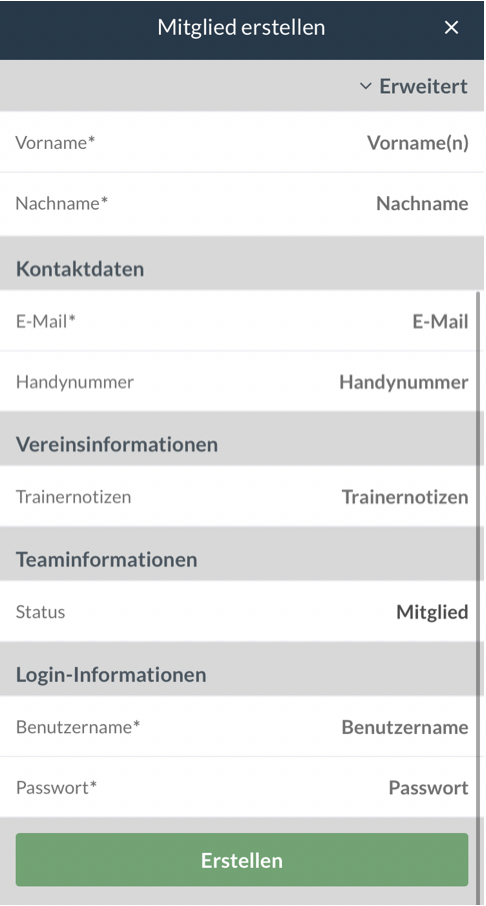 Beachte: Sobald das Mitglied den Login-Link per E-Mail erhält und sich anmeldet, kann der-/diejenige seine Informationen einschließlich der Login-Daten ändern.