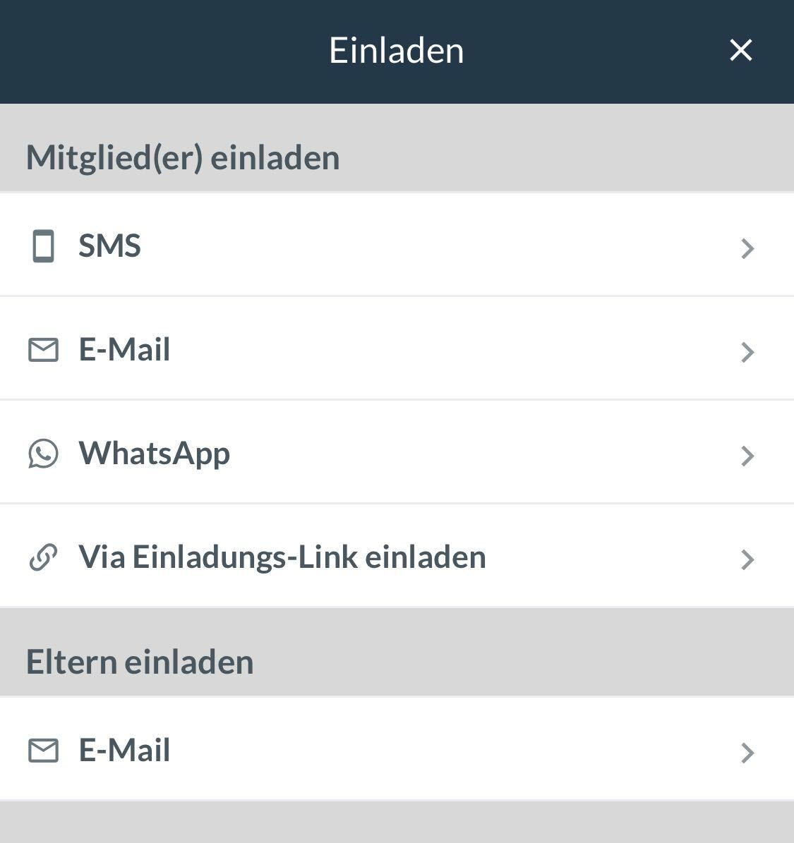 TIPP: Du kannst auch Eltern zu Mitgliedern einladen und sie so auffordern, ein Elternprofil zu erstellen, damit sie das Profil ihres Kindes verwalten können.