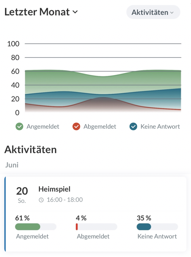 - Aktualisiert automatisch, wie Mitglieder sich für Aktivitäten im Team anmelden/abmelden/bzw. unentschlossen sind
