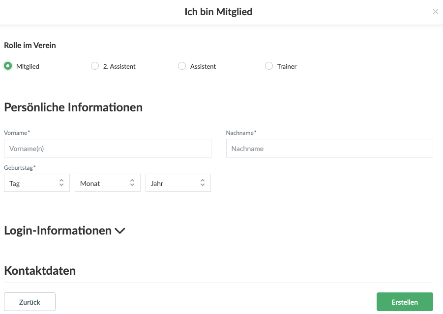 - Klicke auf den grünen Button Mitglied erstellen rechts am Bildschirm