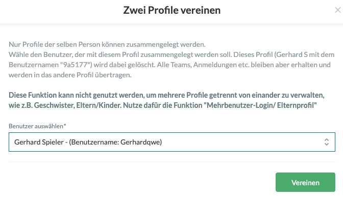 Wie kann ich zwei identische Profile zu einem einzigen vereinen?