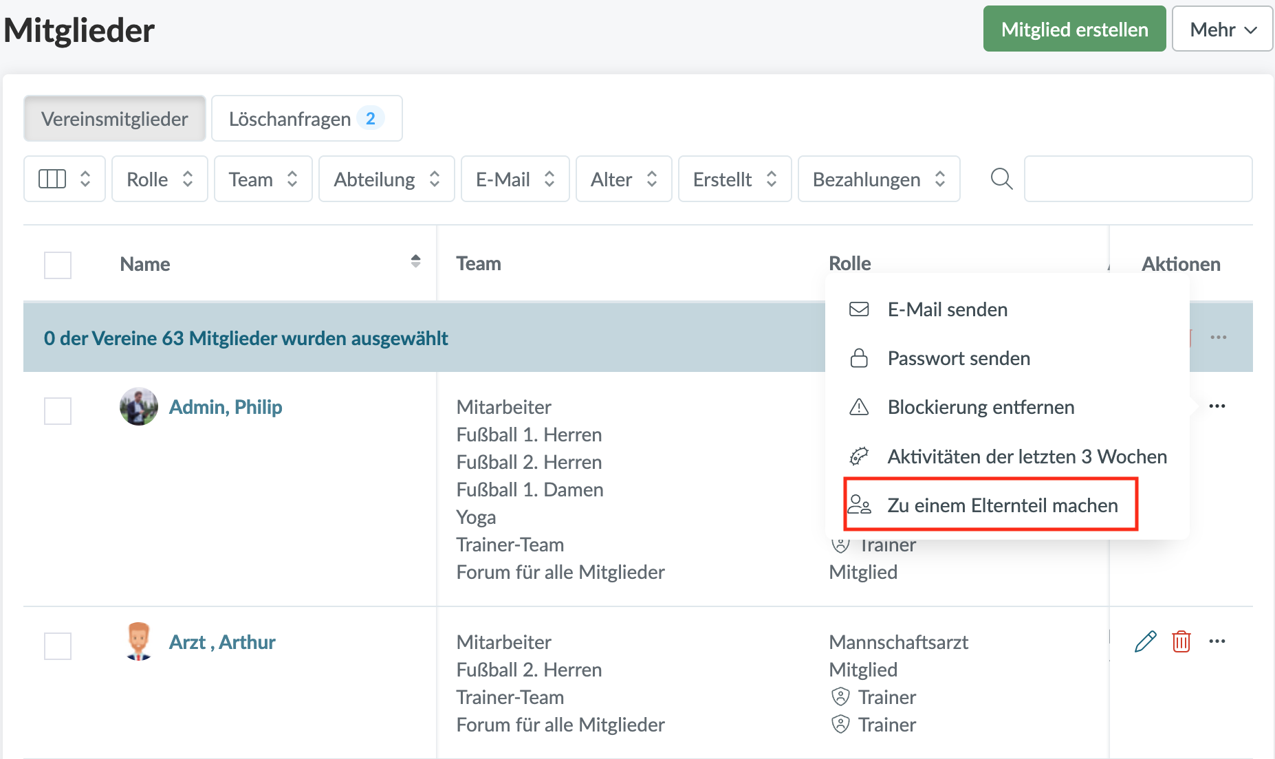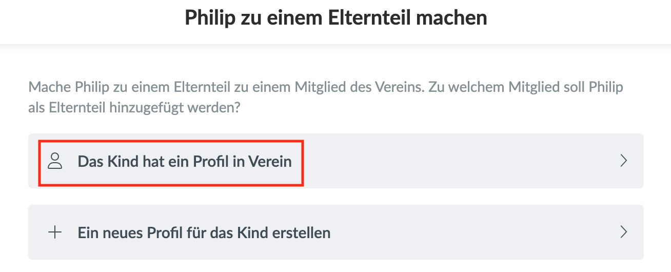 - Als Administrator kannst du zwei Mitglieder deines Vereins als Elternteil und Kind verknüpfen.