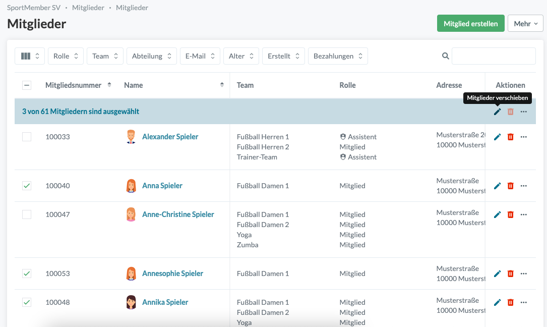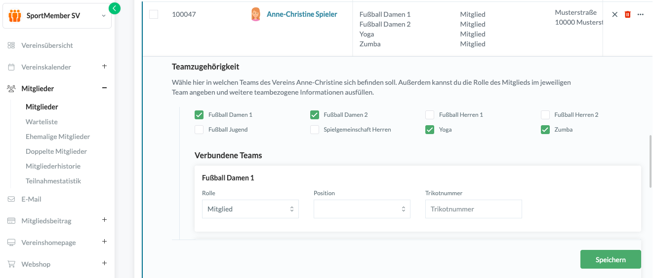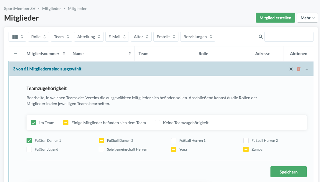 Als Administrator kannst du jedes Mitglied/jeden Trainer zwischen beliebigen Teams verschieben oder hinzufügen.