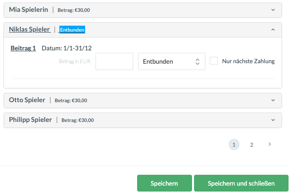 Hinweis: Hier befreist du Mitglieder von Beitragszahlungen, die bereits per E-Mail samt Zahlungsaufforderung versendet wurden, und somit NICHT zukünftigen Zahlungen.