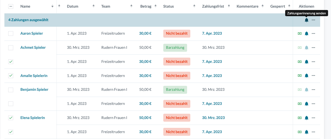 - Das System prüft eigenständig, wer eine Erinnerung erhalten kann, basierend auf der Zahlungsaktivität eurer Mitglieder in der SportMember-App