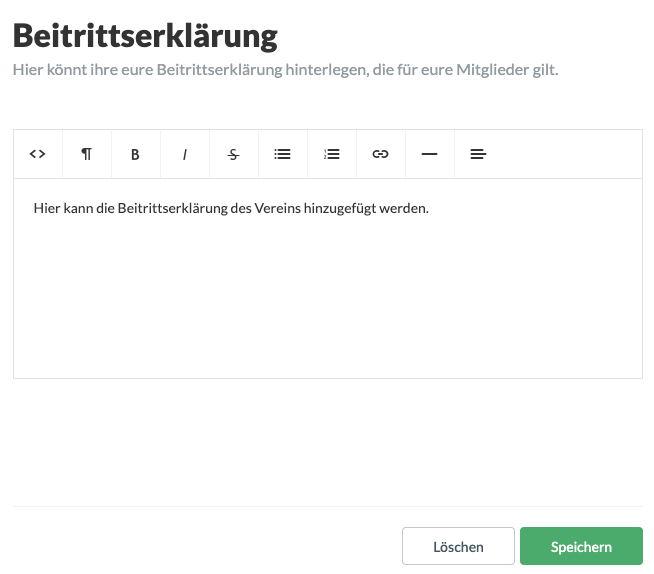 - ACHTUNG: Wenn du die Beitrittserklärung ändern solltest, werden alle bestehenden Mitglieder aufgefordert, diese erneut zu akzeptieren