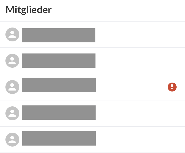 In der SportMember-App des Trainers erscheint nun ein neben den Namen der Mitglieder, die sich im Team des Trainers befinden und aber ihre Beiträge nicht rechtzeitig bezahlt haben.
