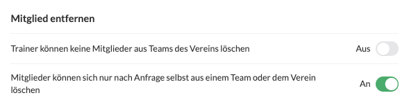 - Grundsätzlich können Trainer die Mitglieder ihrer Teams löschen, es sei denn, du sperrst diese Möglichkeit auf Vereinsebene