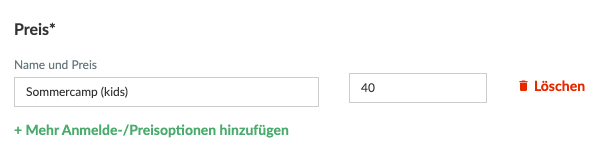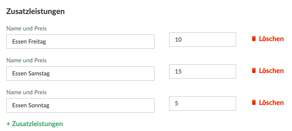 - Ihr könnt verschiedene Ticketarten/Zusatzleistungen erstellen, je nachdem, ob ihr verschiedene Verträge habt und optionale Extras anbietet