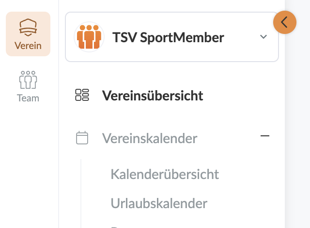 - Klicke auf das Verein in der oberen linken Ecke