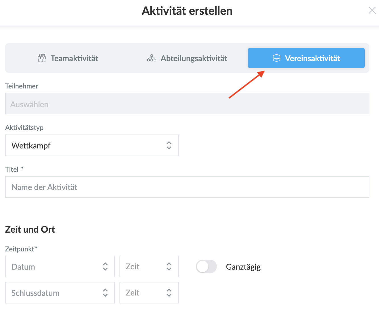 Wie erstelle ich eine Aktivität für den ganzen Verein?