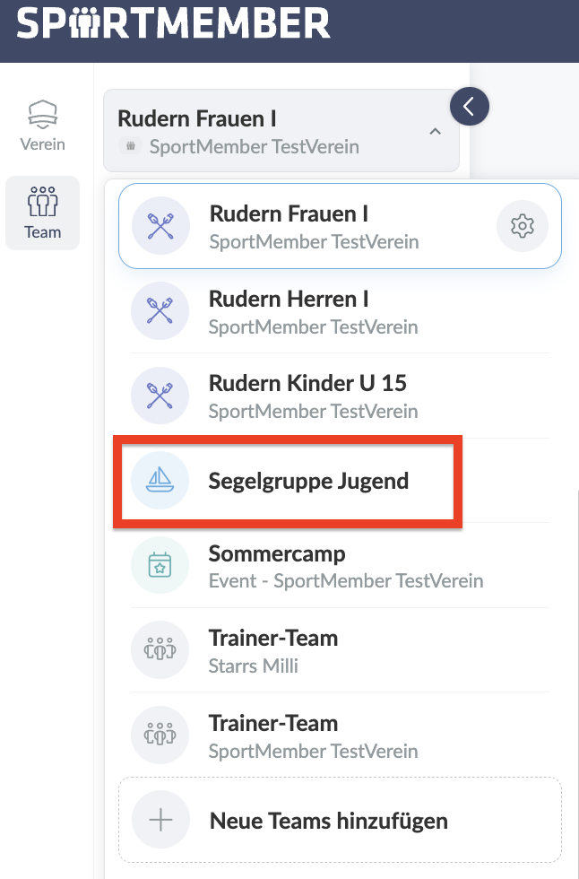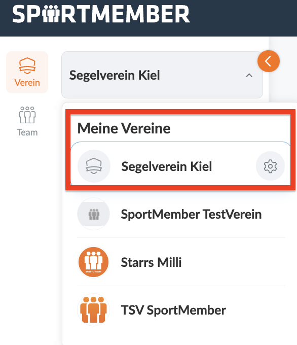 Jetzt kannst du über die Vereinsübersicht zwischen den Vereinen hin und her wechseln!