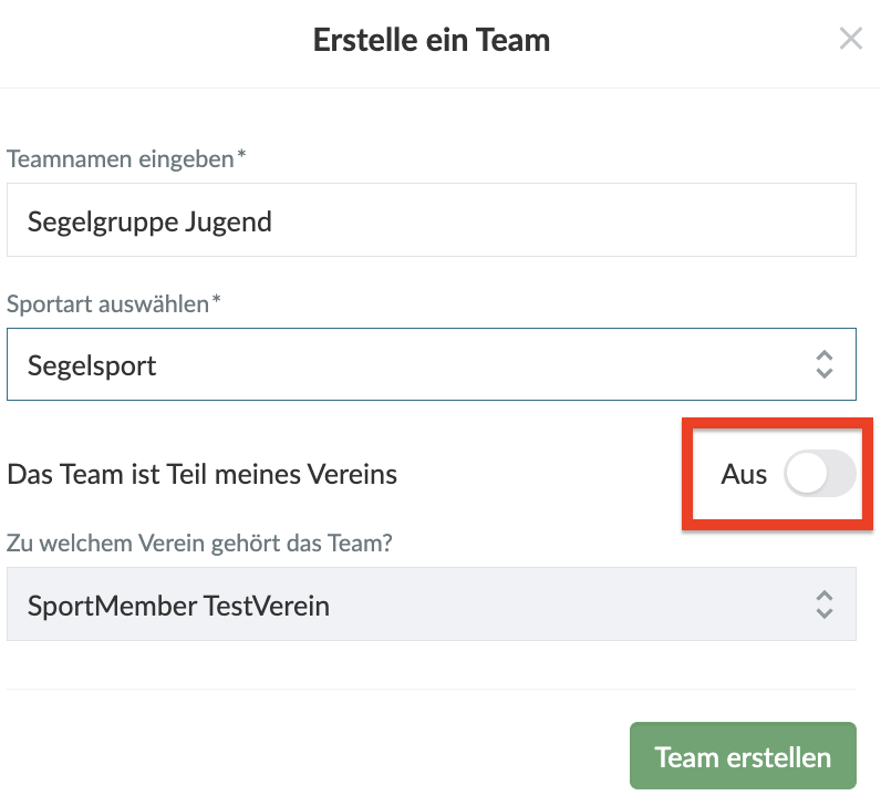 5. Deaktiviere das Häkchen bei Das Team ist Teil meines Vereins.