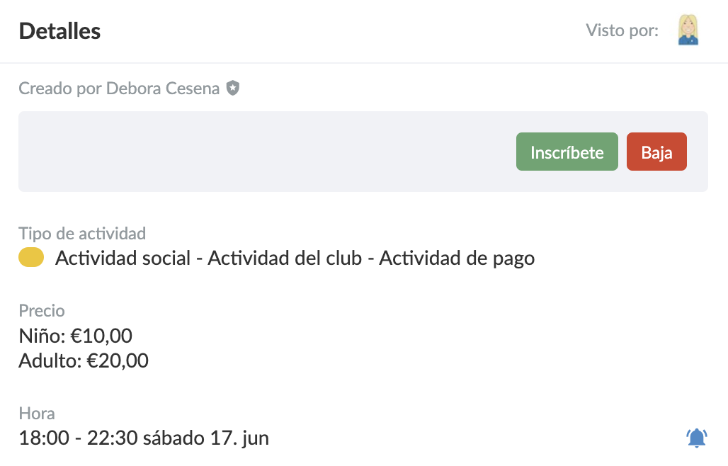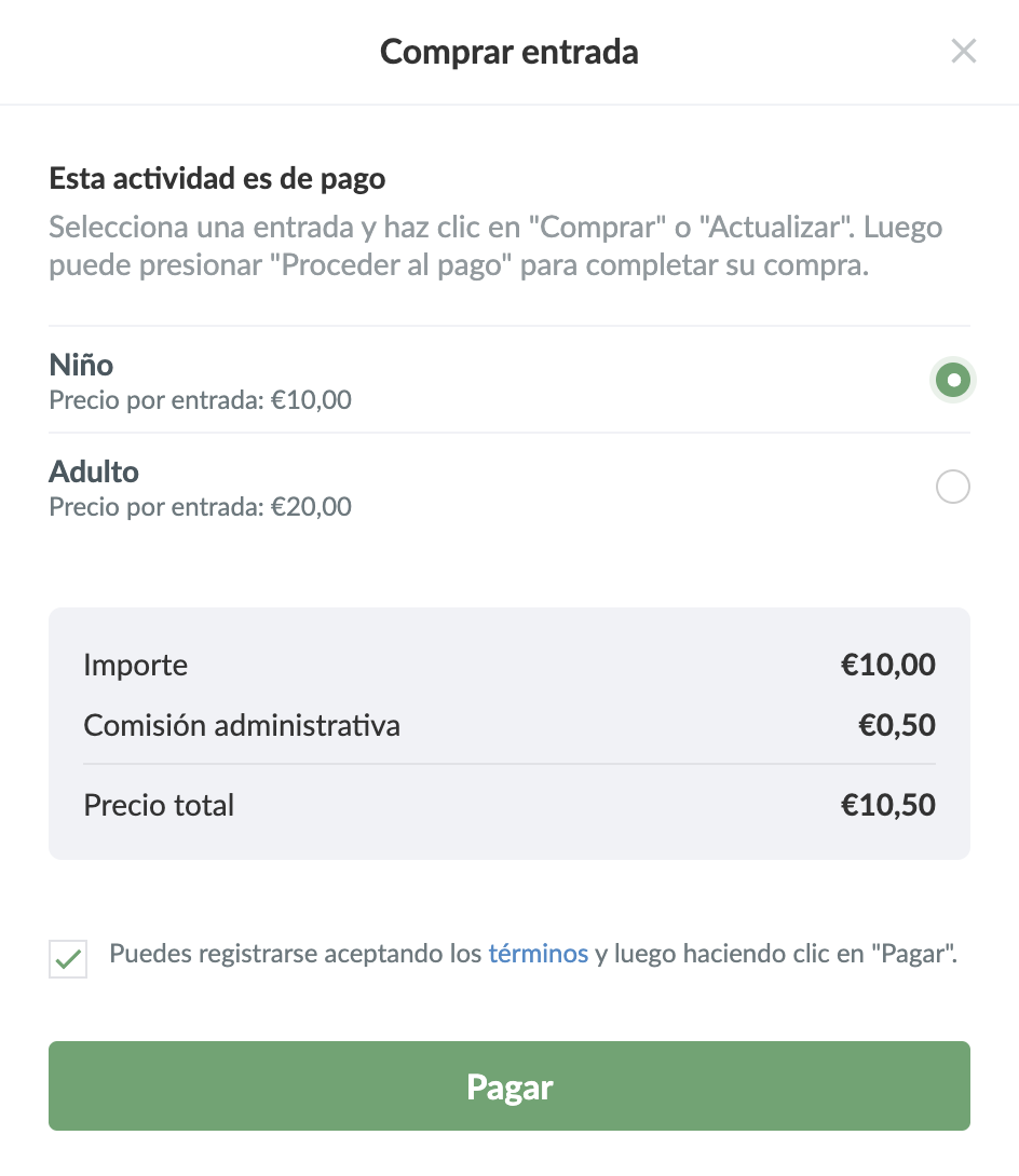 - Puedes crear diferentes tipos de entradas dependiendo de si tienes diferentes contratos y si los miembros pueden comprar más de una entrada para la actividad.