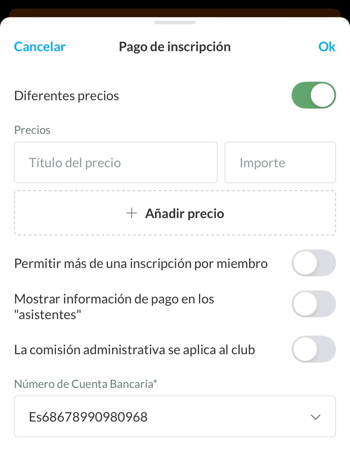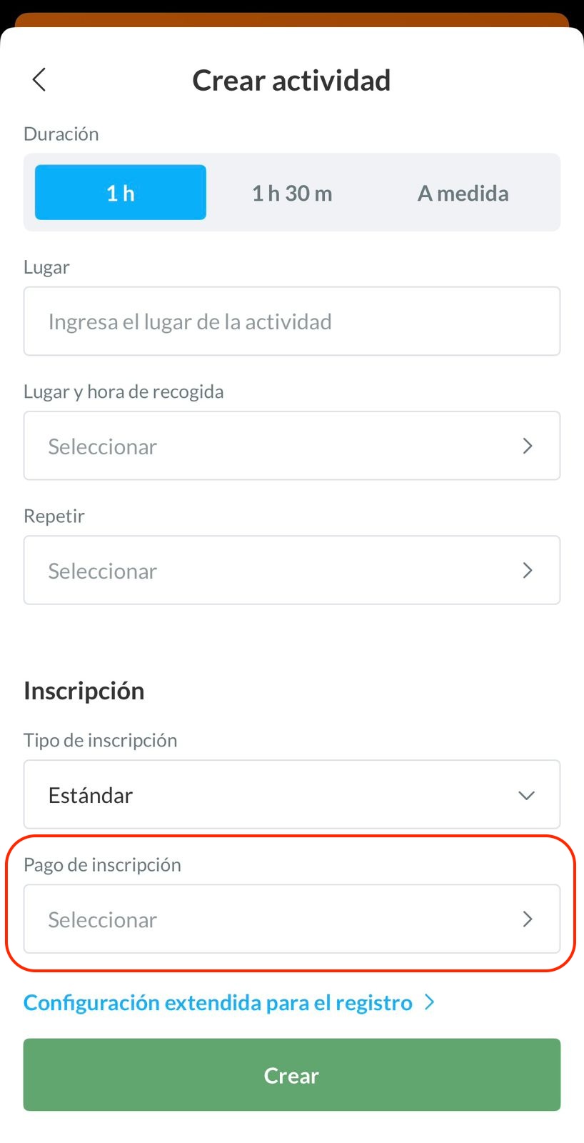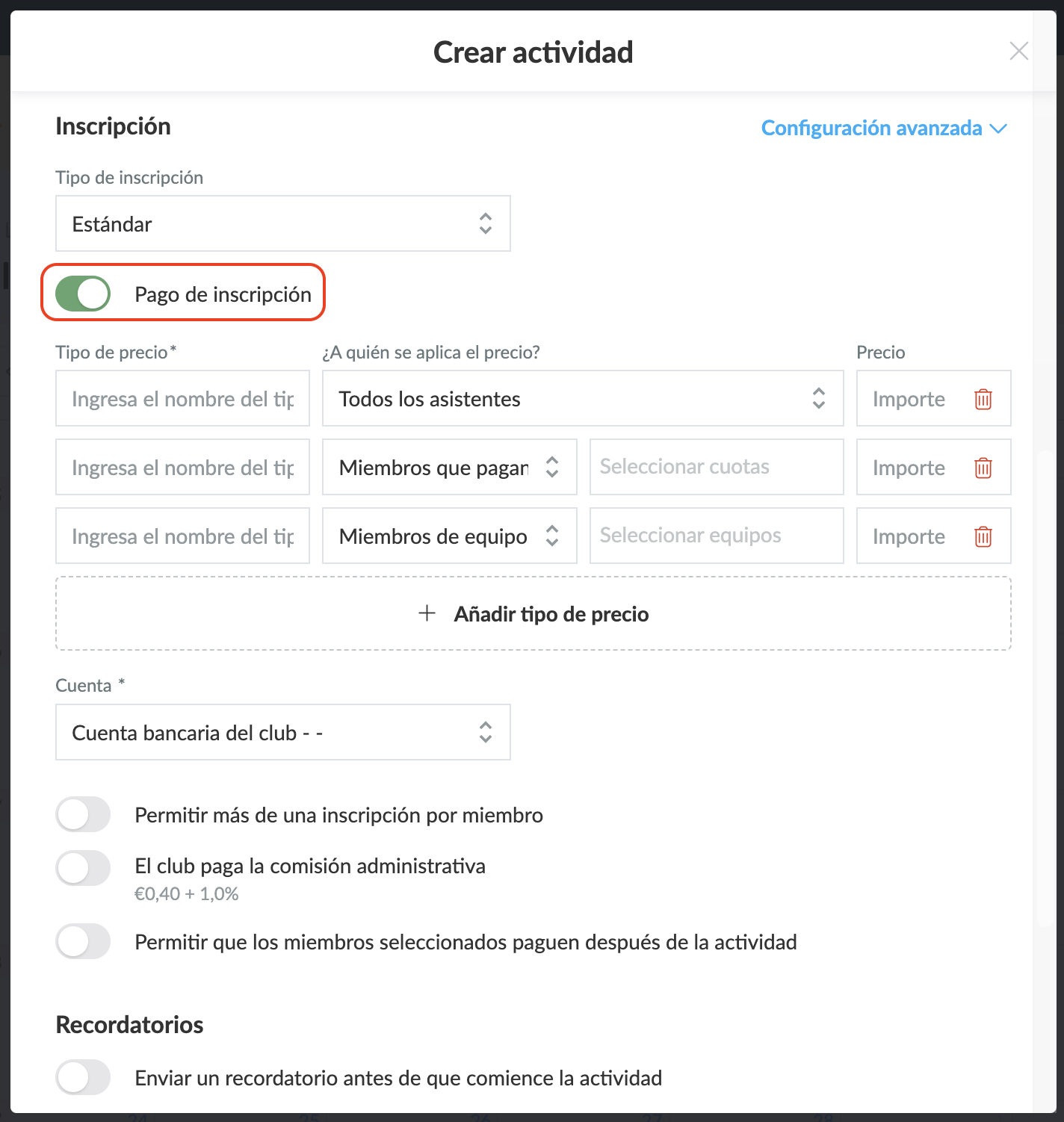 Por último, deberás definir si los miembros pueden pagar después de la actividad