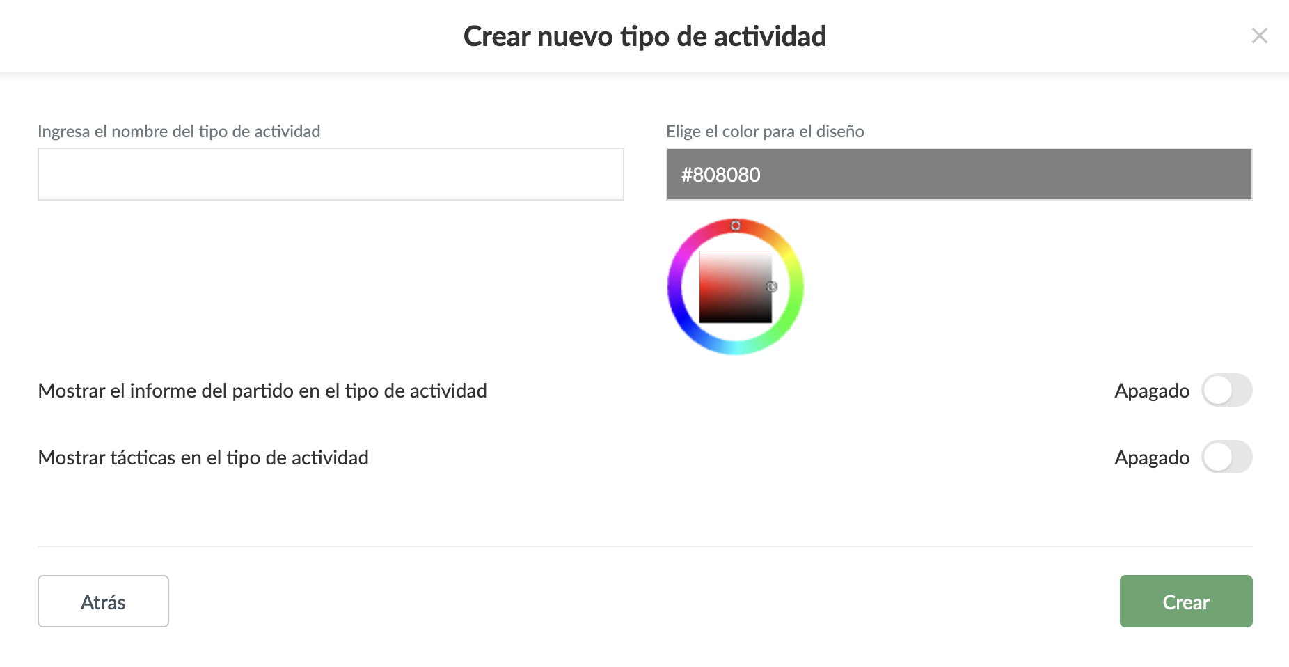 - Solo los administradores del club pueden crear un nuevo tipo de actividad