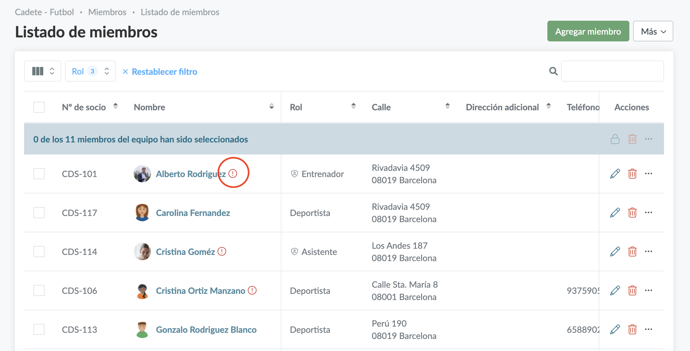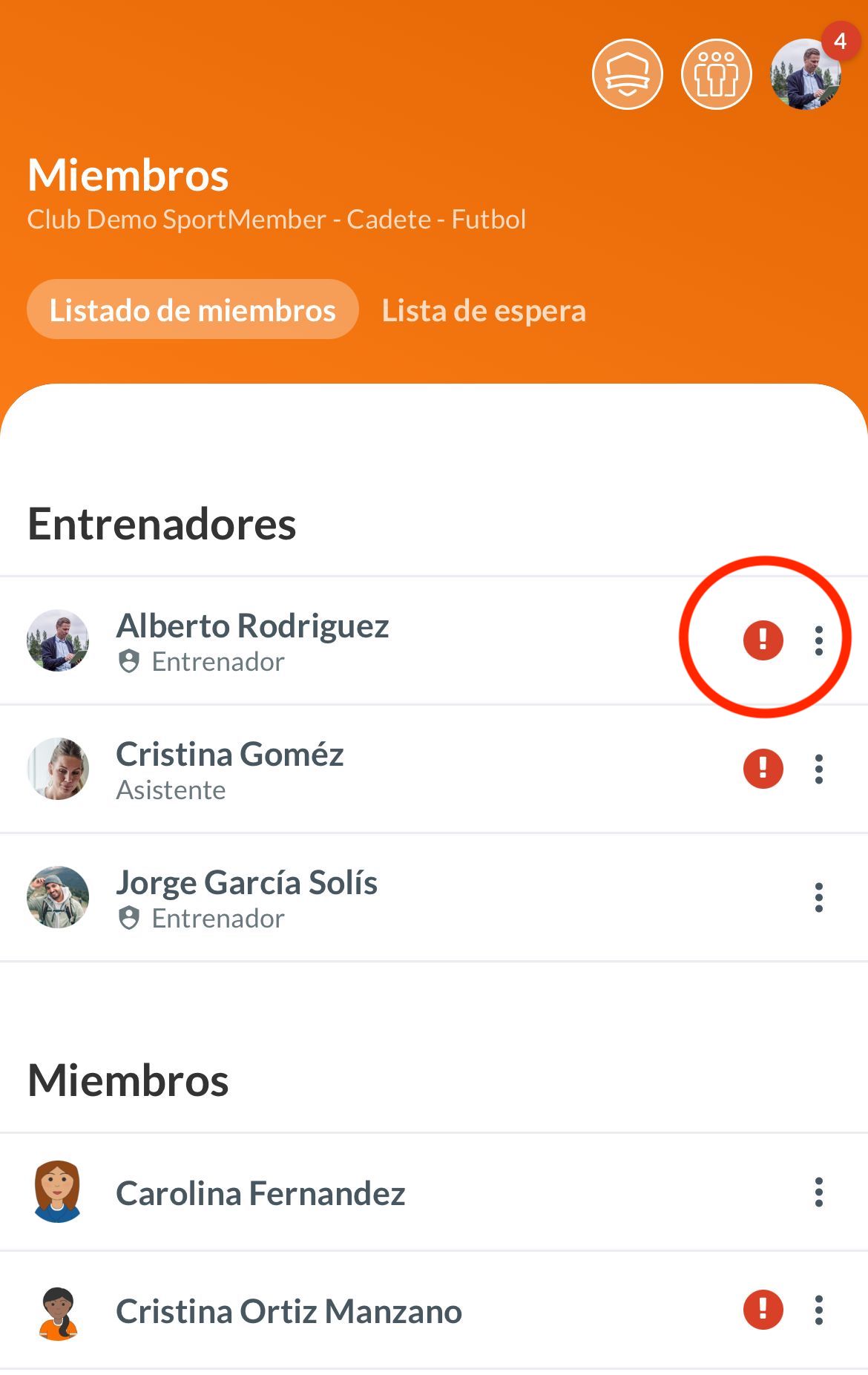 Una vez encendida la opción, el entrenador podrá ver en la app el signo junto al nombre del deportista que no haya pagado su cuota a tiempo.