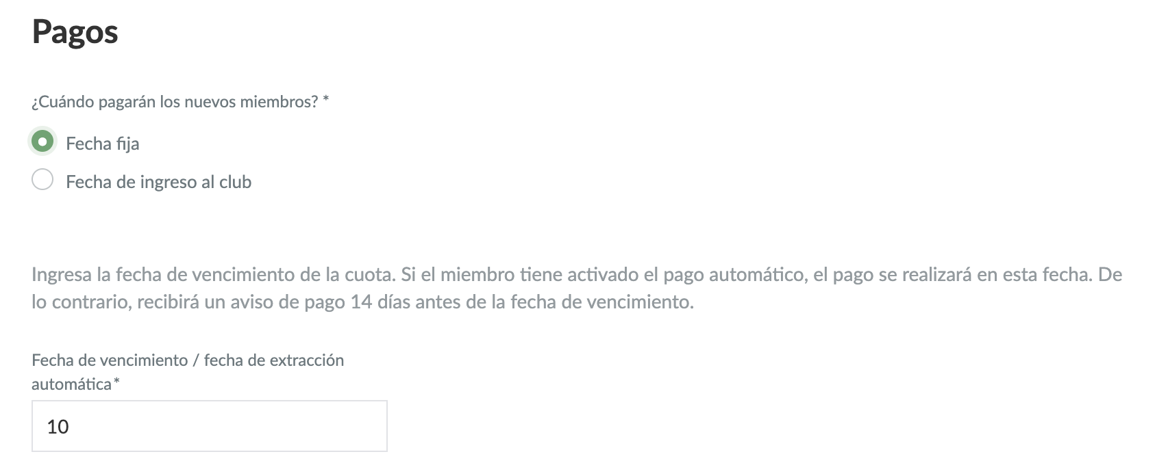 - Luego, debes decidir cuándo los nuevos miembros deben pagar: Esto puede ser en una fecha fija o en la fecha de ingreso al club.