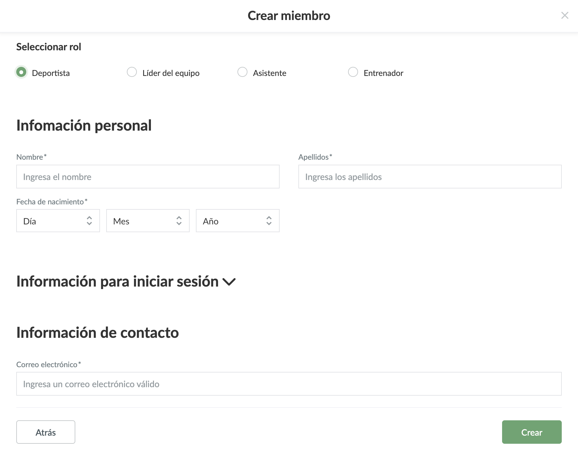 A continuación deberás ingresar todos los datos del deportista: