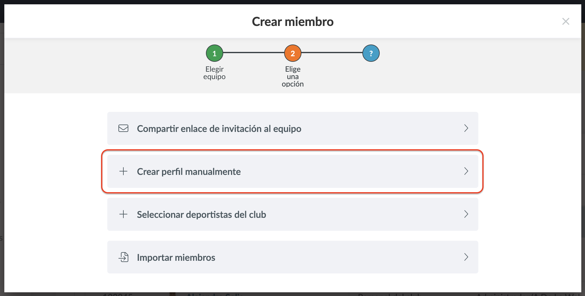 A continuación puedes elegir entre cuatro opciones para crear nuevos miembros: