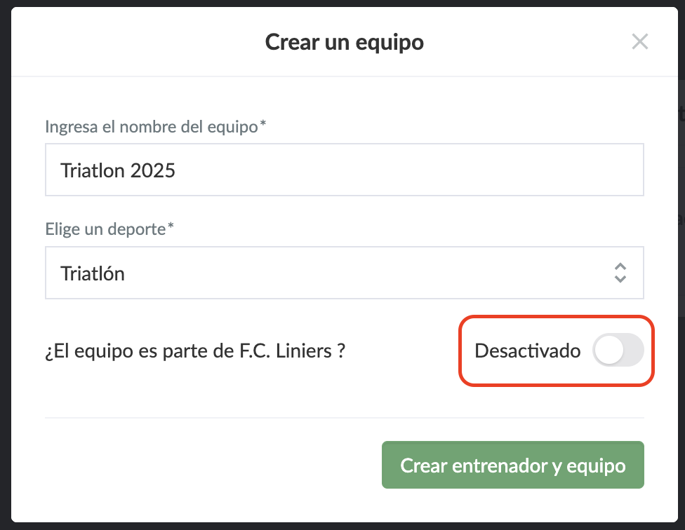 5. Desactiva la opción de ¿El equipo es parte de "Club XXX"?