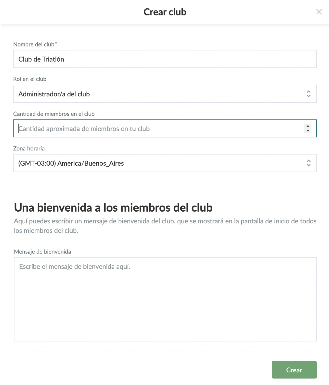 11. Ingresa toda la información necesaria de tu nuevo club y haz clic en el botón verde Crear.
