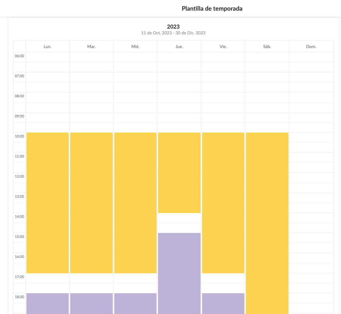 Las franjas horarias amarillas son reservas de temporada. Las violetas son reservas individuales.